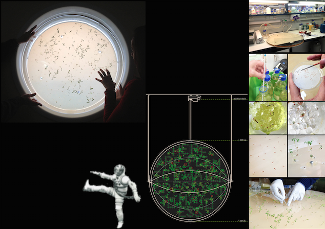 Transpotage – a Moveable and Translucent Garden is the second phase of an ongoing laboratory project which borrows new technologies from other disciplines and transfers them into the sphere of architecture. The first phase, at the Venice Architecture Biennale (2012), explored the lightness of the substrate and movement; here the focus is again on these two issues. The lightness of the substrate is taken to an extreme by making it translucent; meanwhile movement, although simplified to one direction, is also made more perceptible, as the translucency of the substrate reveals the trace of its effect on growing roots.