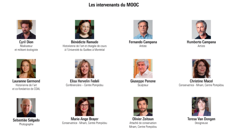 Après le succès du MOOC « Elles font l’art », ayant réuni plus de 42 000 inscriptions en 2021, le Centre Pompidou lance le 10 octobre 2022 un MOOC sur l’écologie dans l’art.